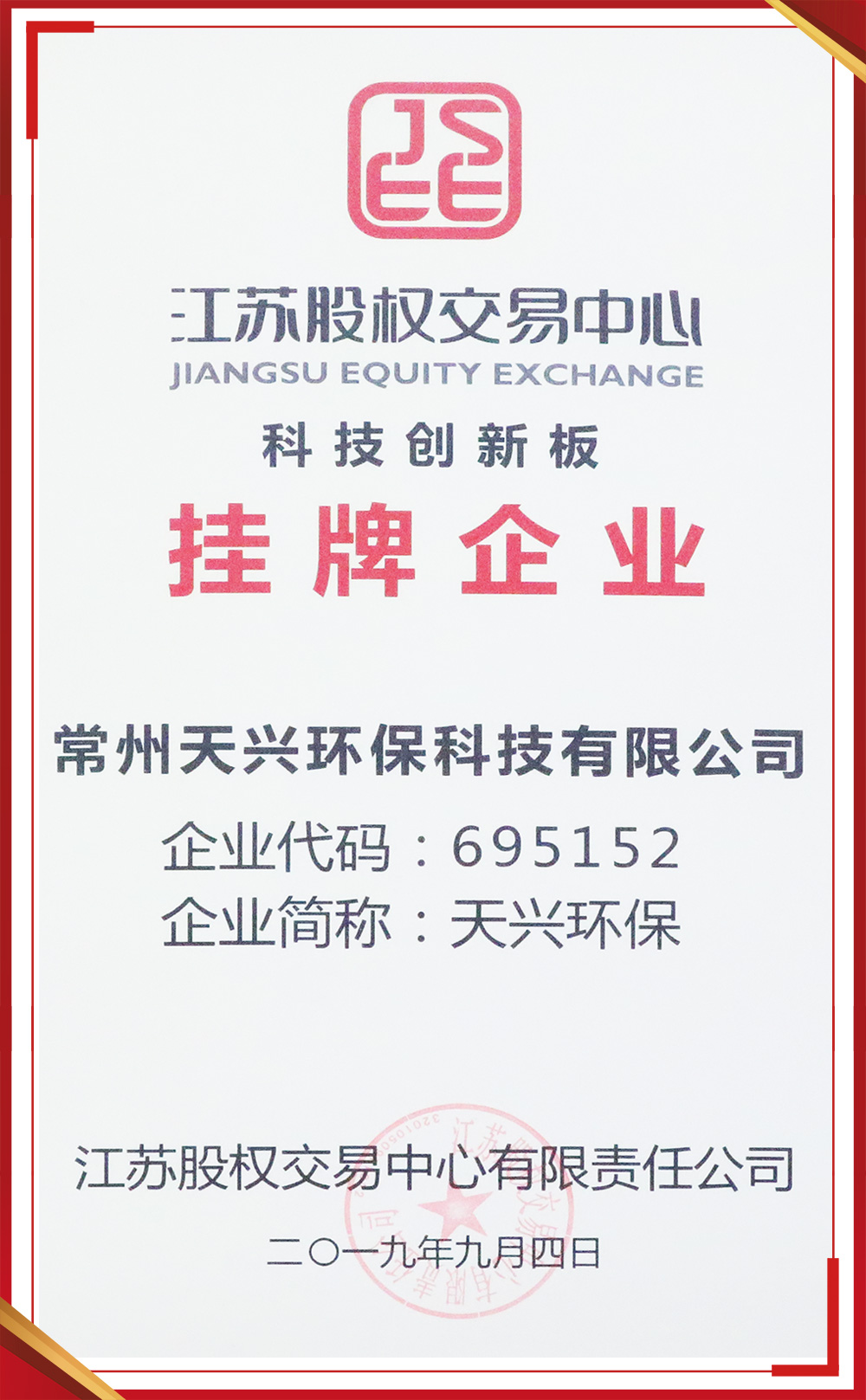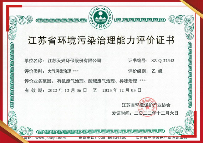 江蘇省環境污染治理能力評價證書