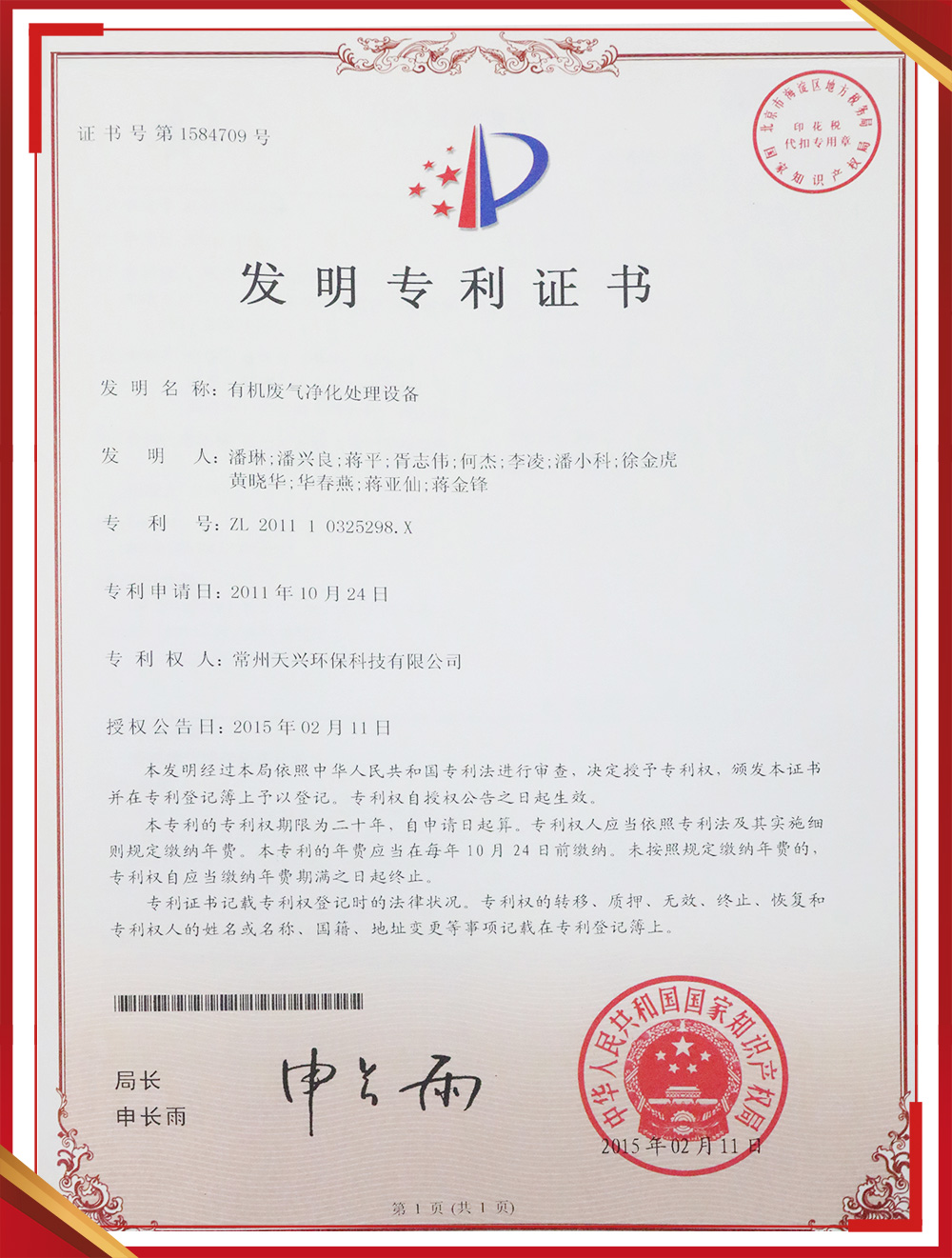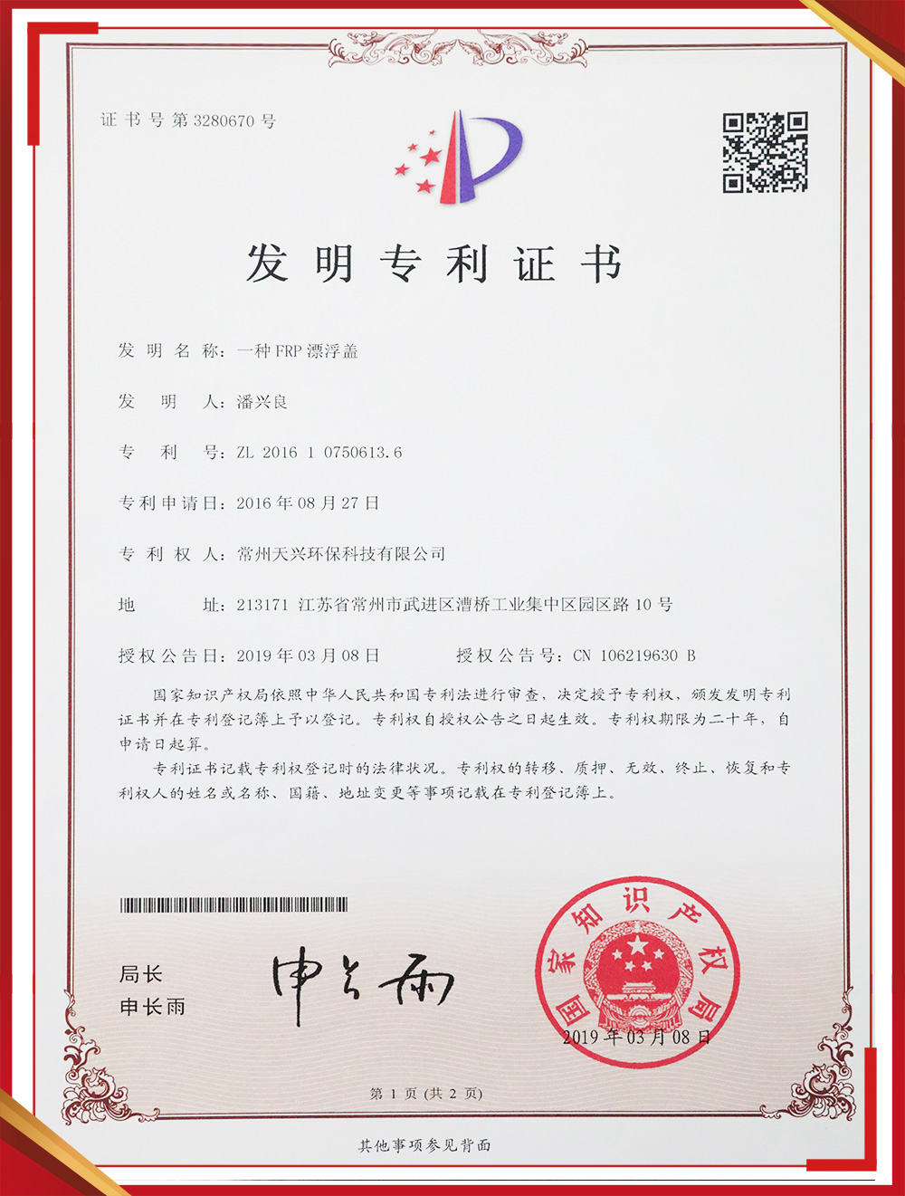 發明專利證書