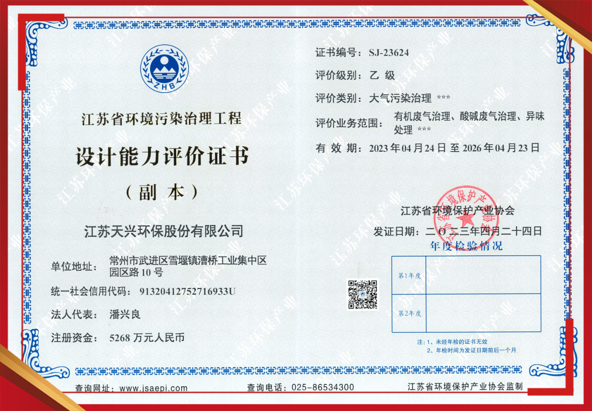 江蘇省環境污染治理工程設計能力評價證書